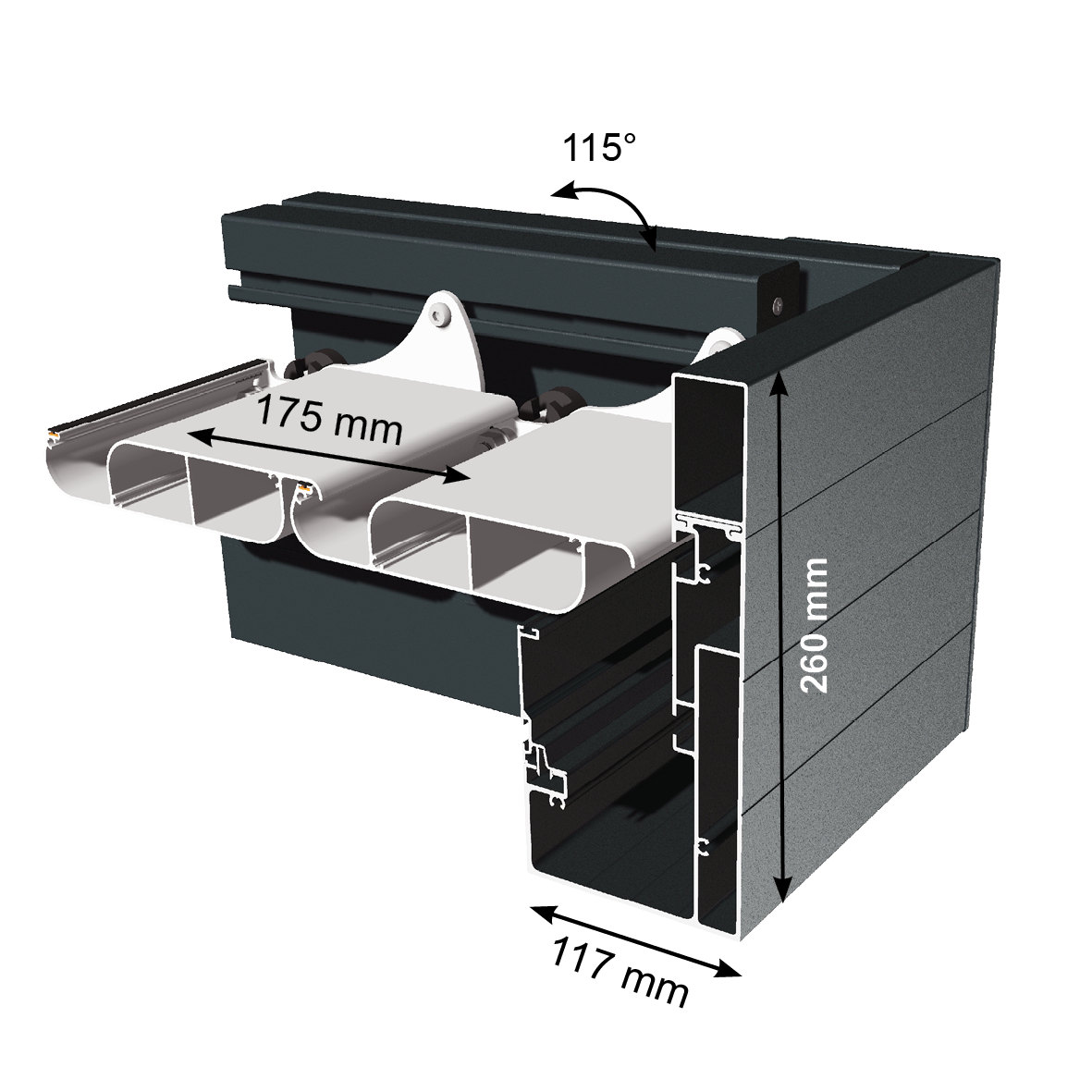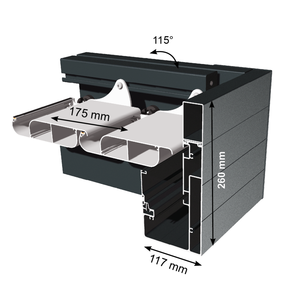 Lames orientables : Les lames larges de 195mm s'orientent de 0° à 115°, vous permettant de moduler l'ensoleillement et la ventilation à votre guise.